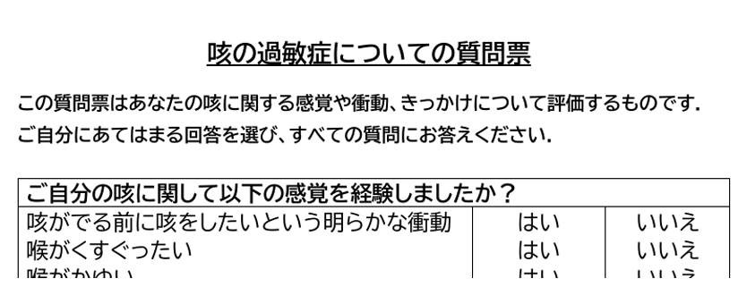 難治性の長引く咳には咳過敏症症候群などを想定して、さらに専門的な問診「咳過敏症質問票」を使用して診断・治療の精度を上げます!